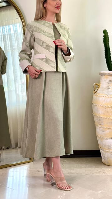 یه ست فوق العاده خوش رنگ و کاربردی. پیراهن و کت سبز جذاب پیراهن از جنس لینن شانتون هست که اصلا چروکی نداره. فری سایز کوچک و بزرگ دارد. با کمربند جمع میشود. قد ۱۳۰ کت ترکیب لینن و ژاکارد سایزبندی دارد. قد ۵۵ جهت ثبت به مراجعه کنید.